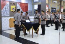 DISTORI.ID – Kapolres Kabupaten Aceh Barat Daya (Abdya), Dhani Catra Nugraha pimpin apel dan seremonial serah terima jabatan (Sertijab) Wakapolres, Kasat Lantas, Kapolsek Susoh, Kapolsek Kuala Batee dan Kasikum di Mapolres setempat, Senin (20/2/2023).