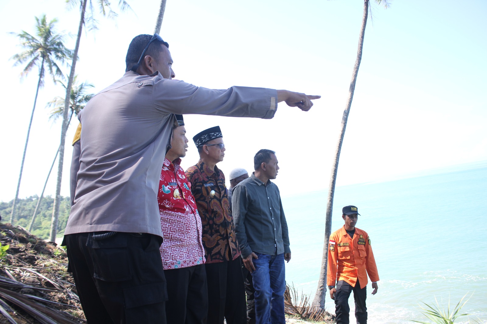 Peninjauan tersebut didampingi oleh Kalak BPBK Aceh Jaya, Tim SAR Banda Aceh, Satgas SAR Aceh Jaya, Relawan PMI, Tagana para personil TNI dan Polri Panglima Laot dan unsur Forkopimcam Indra Jaya.