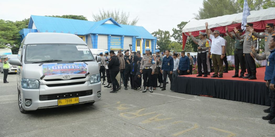 DISTORI.ID – Sekretaris Daerah Aceh Bustami menghadiri pelepasan pemudik di Terminal Tipe A Batoh Banda Aceh dalam program Balik Mudik Gratis yang diselenggarakan Polda Aceh bersama Polresta Banda Aceh, Jumat (28/4/2023).