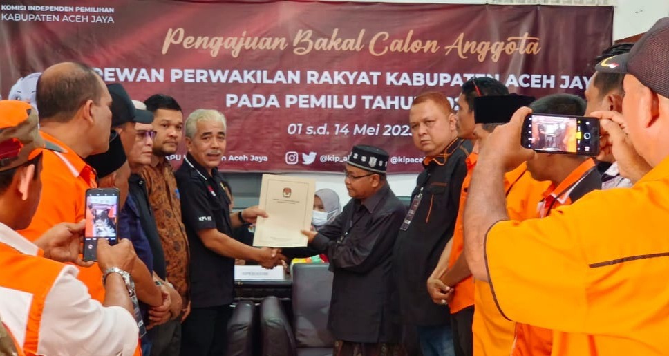 DISTORI.ID – Pengurus Partai Nanggroe Aceh (PNA) mengajukan Bakal Calon Legislatif (Bacaleg) Dewan Perwakilan Rakyat Kabupaten (DPRK) Aceh Jaya ke Komisi Independen Pemilihan (KIP) kabupaten setempat pada hari terakhir jadwal pendaftaran, Minggu (14/5/2023).