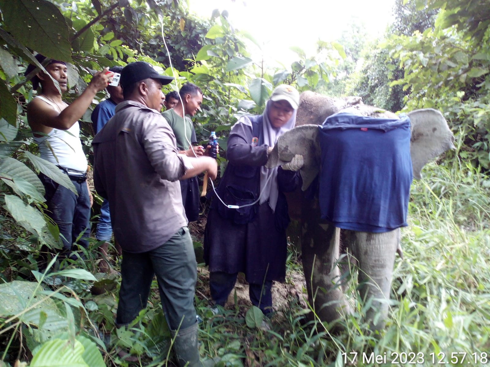 “Tim membutuhkan waktu hampir 45 menit dalam melakukan pencarian terhadap anak gajah liar yang dilaporkan masyarakat terkena jerat di Desa Panggong,” kata Gunawan, Rabu (17/5/2023).