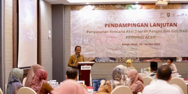 DISTORI.ID – Plt Asisten Perekonomian dan Pembangunan (Asisten II) Sekda Aceh, Mawardi, menghadiri dan membuka acara pendampingan lanjutan penyusunan Rencana Aksi Daerah Pangan dan Gizi (RAD-PG) Aceh tahun 2023 yang digelar Kementerian Perencanaan Pembangunan Nasional Republik Indonesia/Badan Perencanaan Pembangunan Nasional di Banda Aceh, Selasa (23/5/2023).