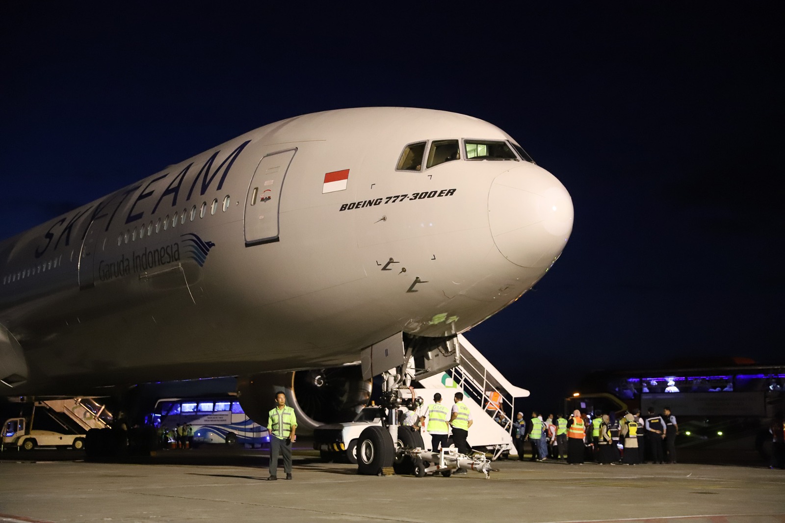 Pesawat dengan nomor penerbangan GA2102 tersebut mengangkut 393 jemaah haji, yang terdiri dari 153 jemaah laki-laki dan 240 perempuan. Jemaah tersebut masing-masing berasal dari Kabupaten Pidie sebanyak 187 orang, dari Kota Langsa 174 orang dan 24 orang dari Kabupaten Aceh Besar.