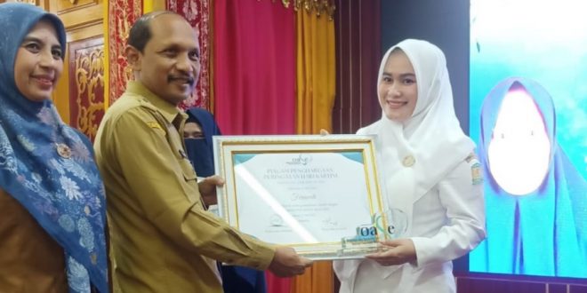 DISTORI.ID – Asisten Pemerintahan Keistimewaan Aceh, M. Jafar dan Kesra Sekdakab Aceh Besar Farhan mendampingi Ferawati, bidan yang bertugas di Puskesmas Pulo Aceh, menerima penghargaan perempuan berjasa dan berprestasi dari Organisasi Aksi Solidaritas Era Kabinet Indonesia Maju (OASE-KIM) dalam rangka peringatan Hari Kartini tahun 2023.