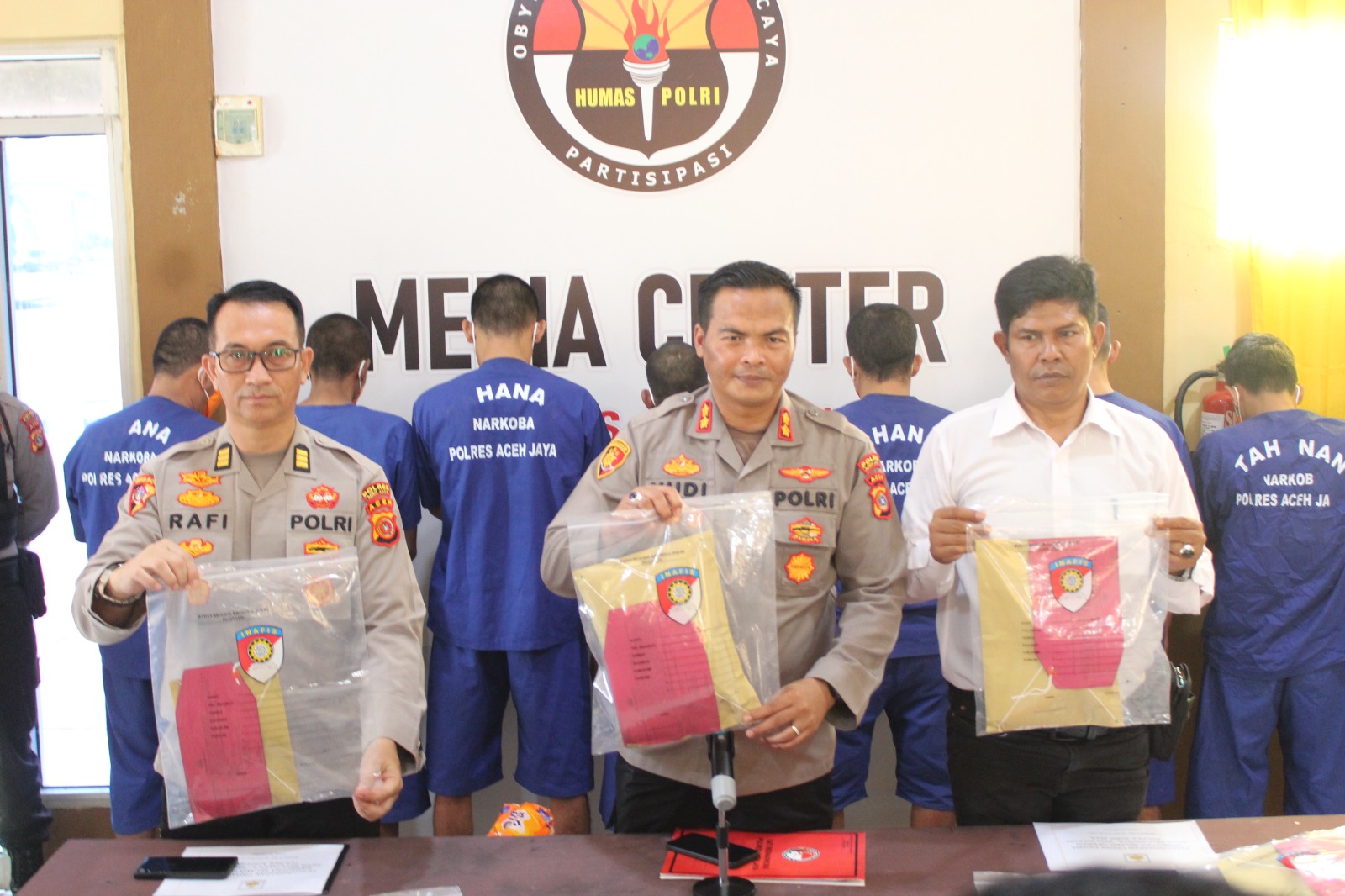 DISTORI.ID – Polres Aceh Jaya berhasil meringkus serta mengamankan delapan orang terduga pelaku tindak pidana narkotika jenis sabu dan ganja di wilayah kabupaten setempat.