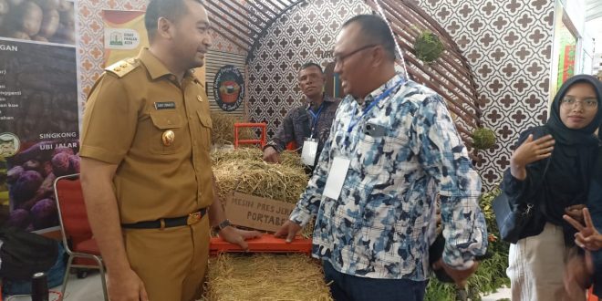 DISTORI.ID – Wakil Gubernur Sumatera Barat Audy Joinaldy, tertarik dengan Mesin Press Jerami Portabel yang dipamerkan di stand Pemerintah Aceh, di arena Pekan Nasional Kontak Tani Nelayan Andalan (Penas-KTNA) XVI, di Lanud Tabing, Selasa (13/6/2023).