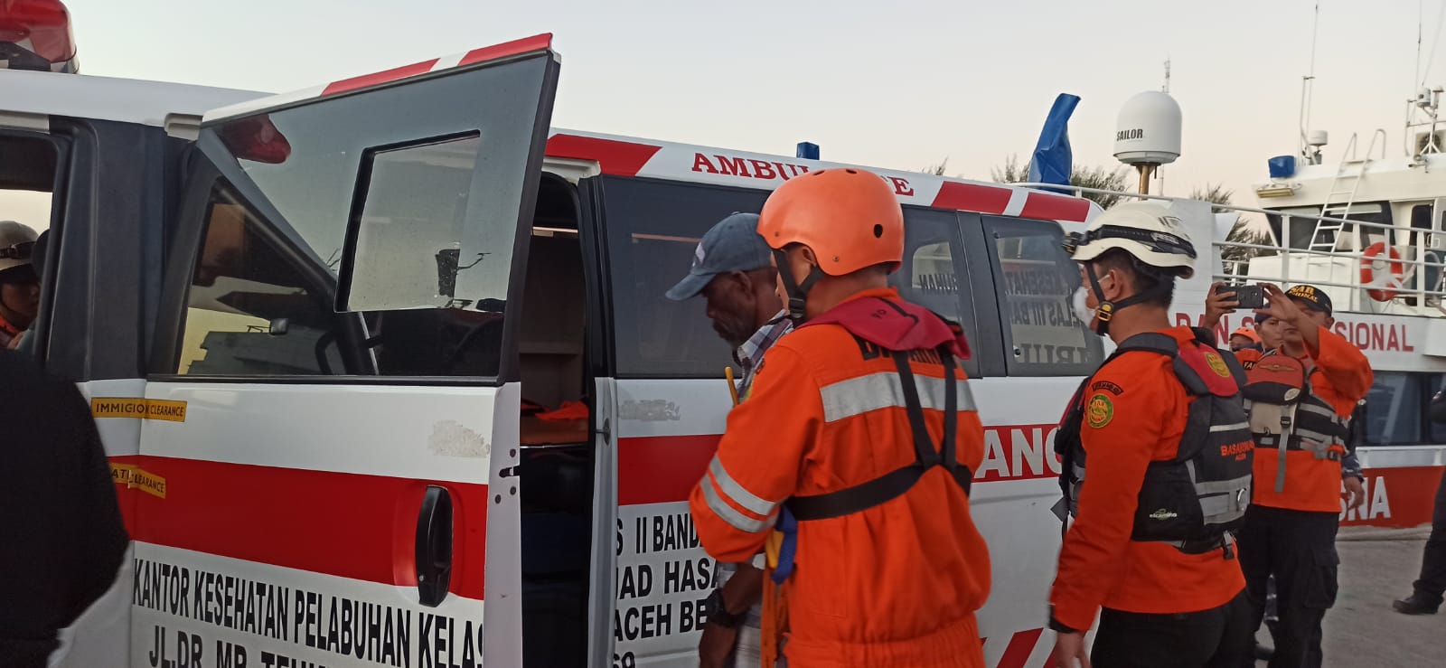 Pukul 06.20 WIB KN SAR Kresna tiba di Pelabuhan Ulee Lheue, korban langsung dibawa menggunakan ambulance ke RSUD Zainal Abidin guna penanganan medis lebih lanjut. []