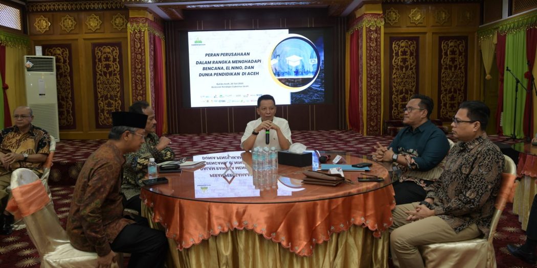 Hal itu disampaikan Achmad Marzuki saat berbicara dalam diskusi bersama petinggi perusahaan-perusahaan yang beroperasi di Aceh, terkait peran mereka dalam rangka menghadapi bencana El Nino dan dunia pendidikan di Meuligoe Gubernur Aceh, Kamis (20/7/2023).