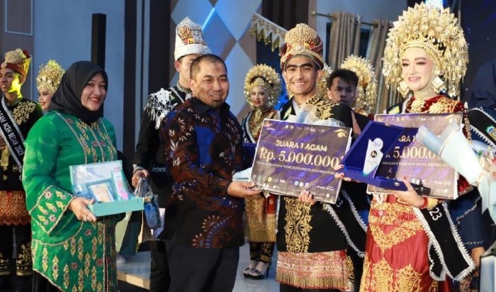 DISTORI.ID – Penjabat (Pj) Bupati Aceh Besar Muhammad Iswanto, didampingi Pj Ketua Tim Penggerak dan Pemberdayaan Kesejahteraan Keluarga (TP-PKK) Kabupaten Aceh Besar Cut Rezky Handayani, menobatkan Agam Inong Aceh Besar tahun 2023.