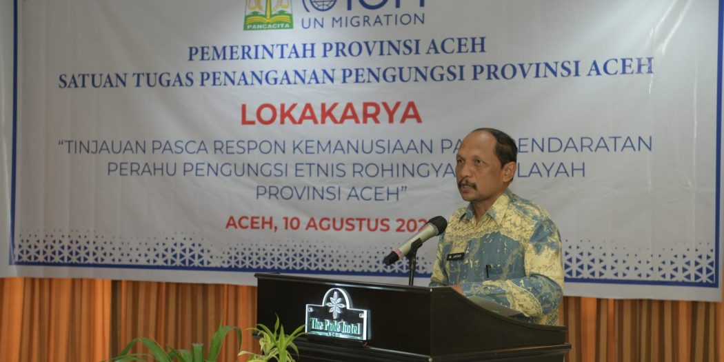DISTORI.ID – Asisten I Sekda Aceh, M Jafar, membuka Lokakarya Tinjauan Paska-Respons Kemanusiaan pada Pendaratan Perahu Pengungsi Etnis Rohingya di Wilayah Aceh, di Banda Aceh, Kamis (10/8/2023).