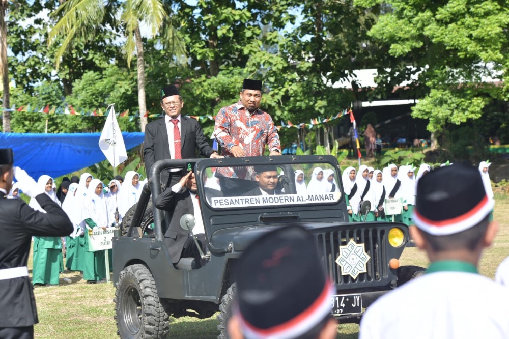 DISTORI.ID – Penjabat (Pj) Bupati Aceh Besar Muhammad Iswanto, kembali bertindak sebagai inspektur upacara apel tahunan pekan perkenalan Khutbatul Arsy. Kali ini di pesantren Modern Al-Manar, Kecamatan Krueng Barona Jaya, Aceh Besar, Minggu (20/8/2023).