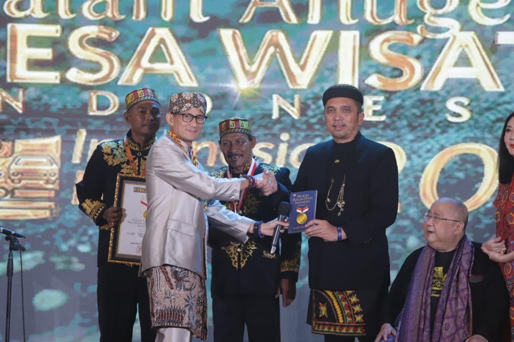 Piagam penghargaan diserahkan langsung oleh Menteri Pariwisata dan Ekonomi Kreatif (Menparekraf) RI, Sandiaga Salahuddin Uno kepada Sekretaris kelompok sadar wisata (Pokdarwis), Suhaimi beserta Keuchik Iskandar dan Pj Wali Kota Sabang, Reza Fahlevi.