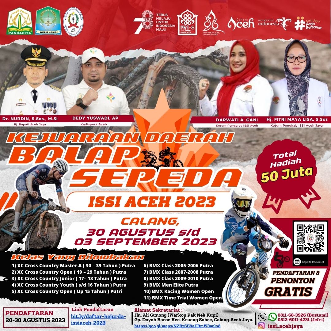 DISTORI.ID – Pengurus Provinsi Ikatan Spot Sepeda Indonesia (ISSI) Aceh menggelar Kejuaraan Daerah (Kejurda) mulai 30 Agustus hingga 3 September 2023 berlangsung di Sirkuit Calang, Aceh Jaya.