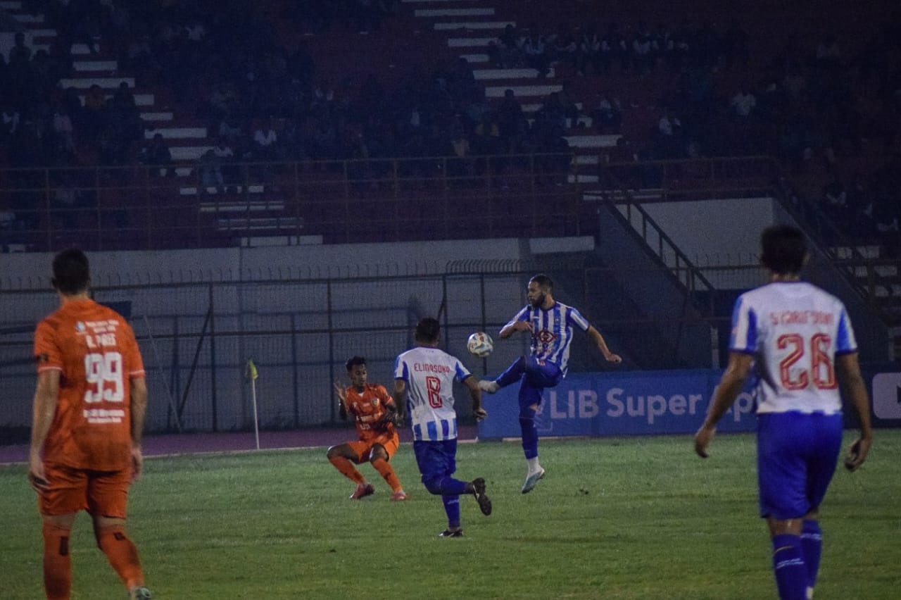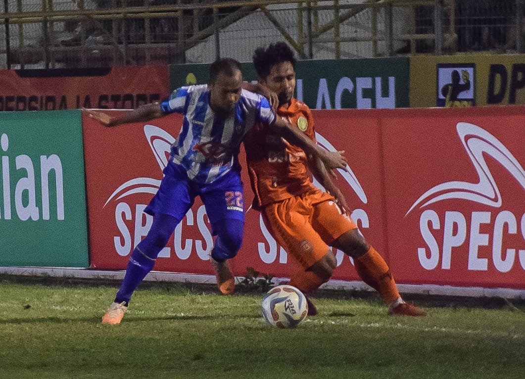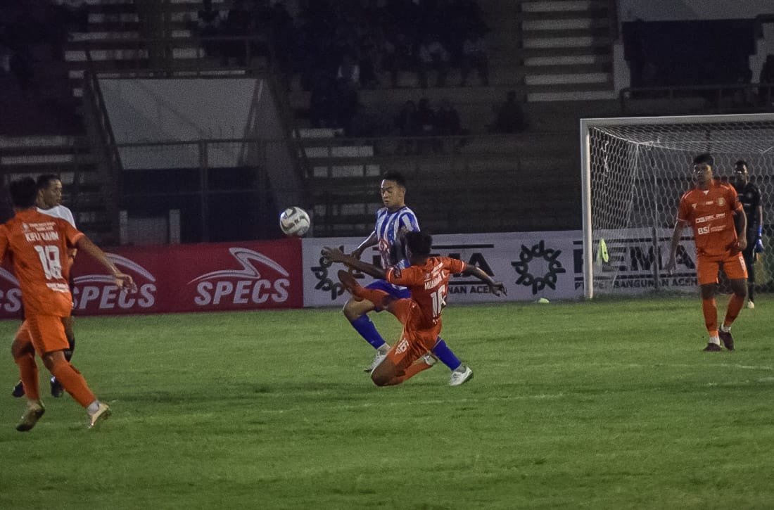Duel udara Persiraja Banda Aceh kontra PSPS Riau. (Foto: Distori/Fahzian Aldevan)