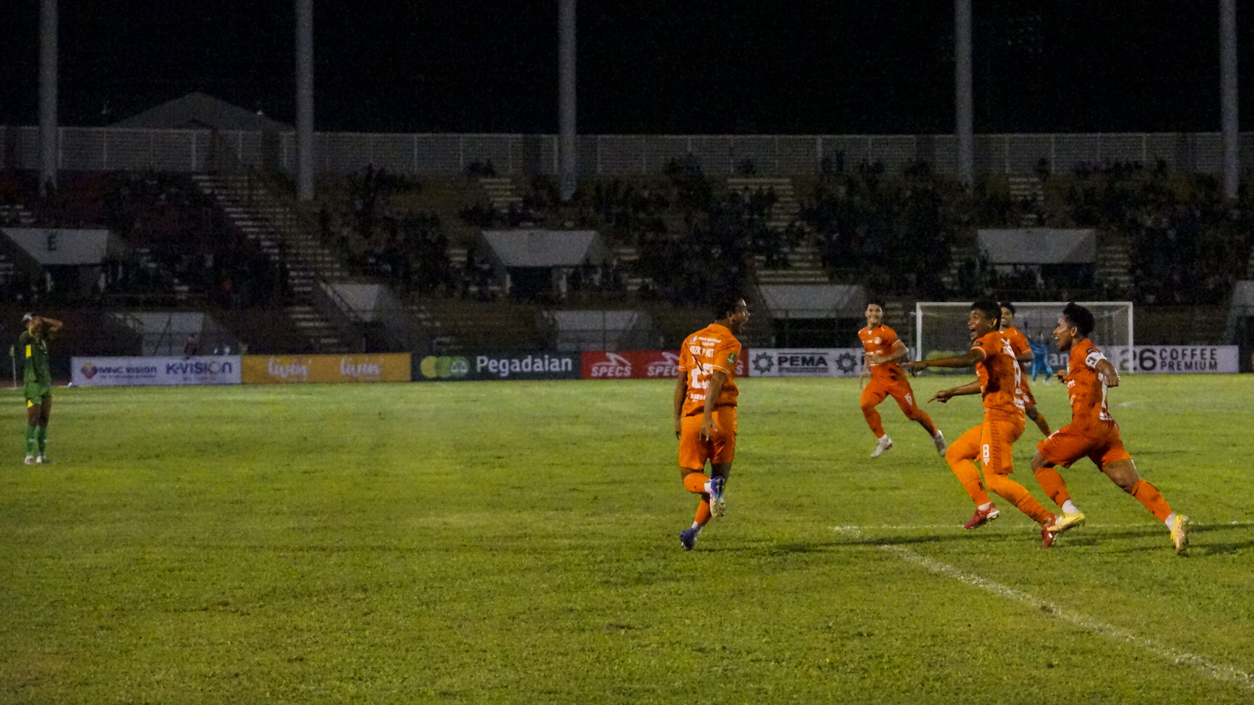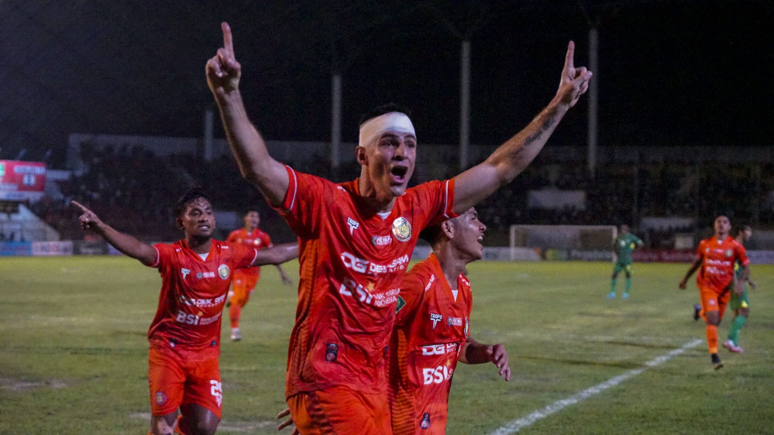 Persiraja Banda Aceh sukses menaklukkan Sriwijaya FC 2-0 dalam laga pekan kedua Liga 2 2023/2024 di Stadion Harapan Bangsa, Banda Aceh, Minggu (17/9/2023). Dua gol Persiraja diciptakan Ricardo Pires pada menit 45 dan Muhammad Rizki Yusuf Nasution pada menit 85. (Foto: Distori/Fahzian Aldevan)