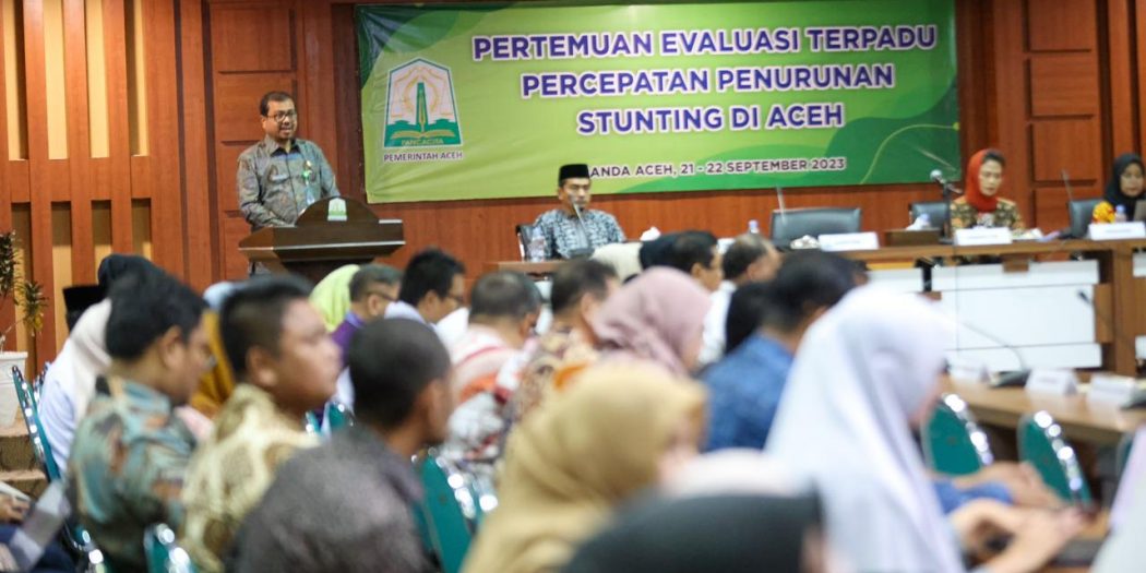 DISTORI.ID – Pemerintah Aceh lakukan pertemuan evaluasi percepatan penurunan stunting, yang digelar di Gedung Serbaguna Setda Aceh, Banda Aceh, (Kamis (21/9/2023). Kegiatan itu digelar agar komitmen dan keseriusan semua pihak dalam menurunkan angka stunting di Aceh bisa berjalan maksimal.