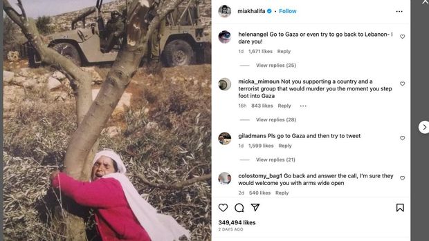 Mia Khalifa sebelumnya menyatakan pembelaannya terhadap rakyat Palestina dalam peperangan yang terjadi antara pihak Israel melawan kelompok militan Hamas.