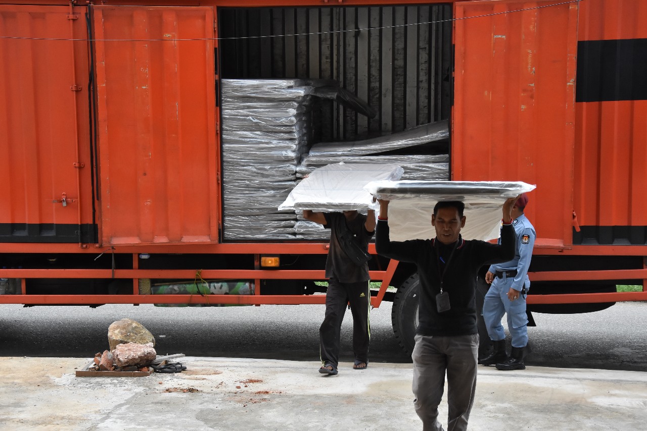 DISTORI.ID – Ribuan bilik penghitungan suara (Tungsura) logistik Pemilu 2024 tiba di Gudang Logistik Komisi Independen Pemilihan (KIP) Kota Banda Aceh, Jumat (13/10/2023).