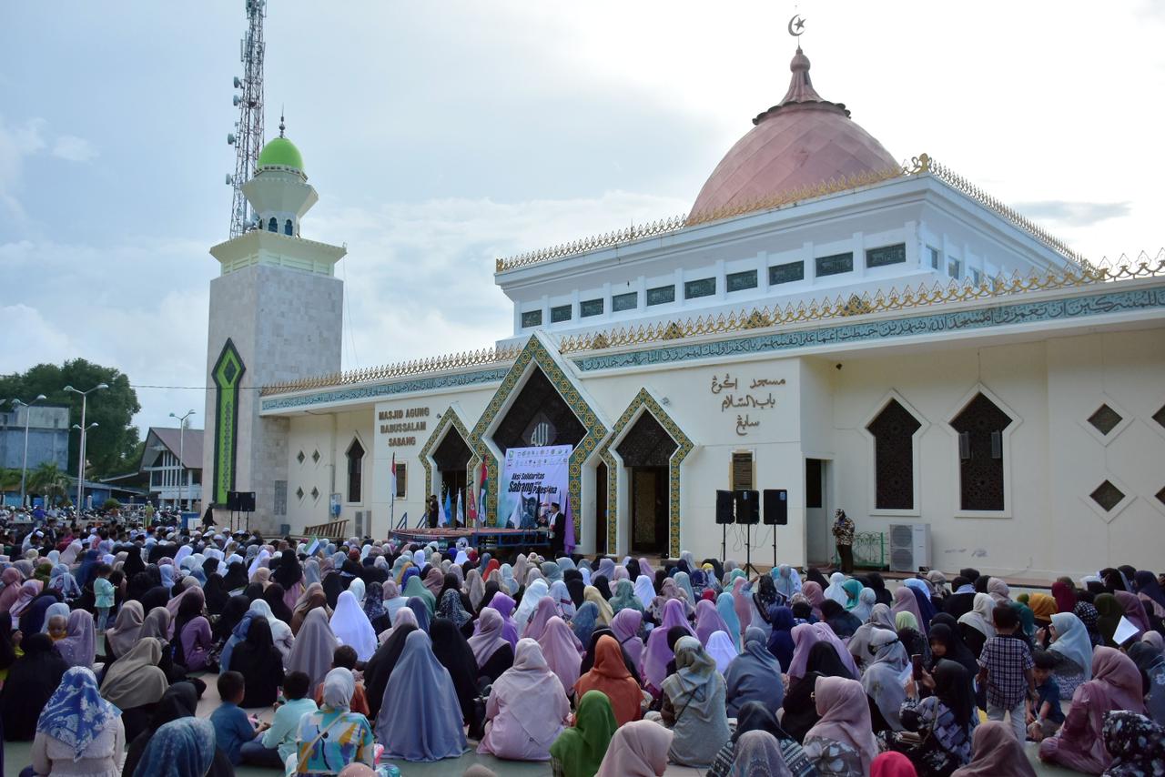 DISTORI.ID – Padati Masjid Agung Babussalam, masyarakat Kota Sabang berbondong-bondong hadir gaungkan aksi solidaritas untuk Palestina. Aksi juga ini diikuti oleh puluhan komunitas, ormas, OKP dan lembaga Islam di Kota Sabang.
