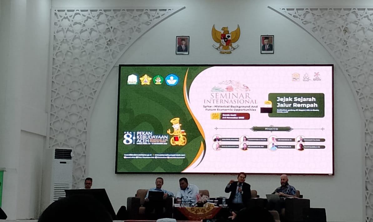 Hal itu terungkap dalam seminar internasional dengan tema “Jejak Sejarah Jalur Rempah” bagian dari rangkaian kegiatan Pekan Kebudayaan Aceh (PKA) ke-8, di UIN Ar-Raniry, Banda Aceh, Senin (6/11/2023).