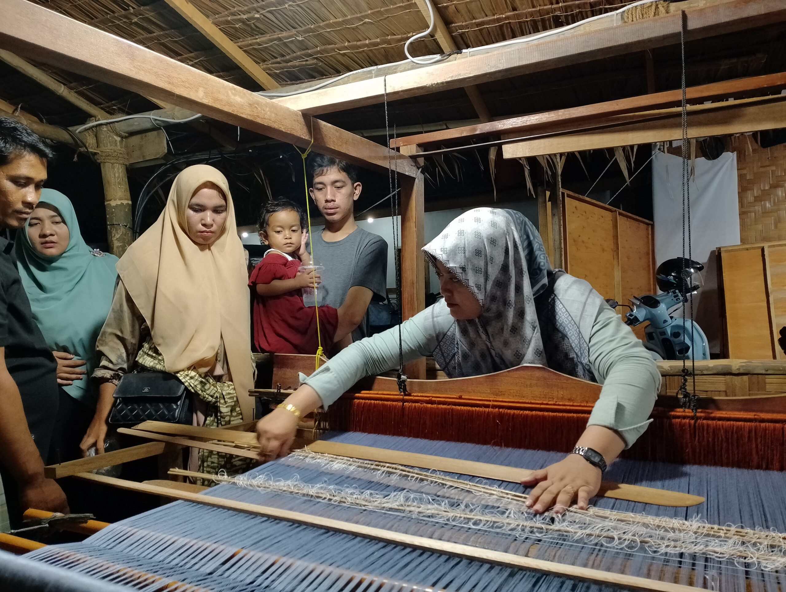 Tak hanya memamerkan beragam kain songket, stan Songket Siem juga mempertontonkan cara menenun songket yang dilakukan secara tradisional. Antukan kayu-kayu penenun seakan memikat para pengunjung PKA ramai-ramai melihat proses tenun Songket Nyakmu.