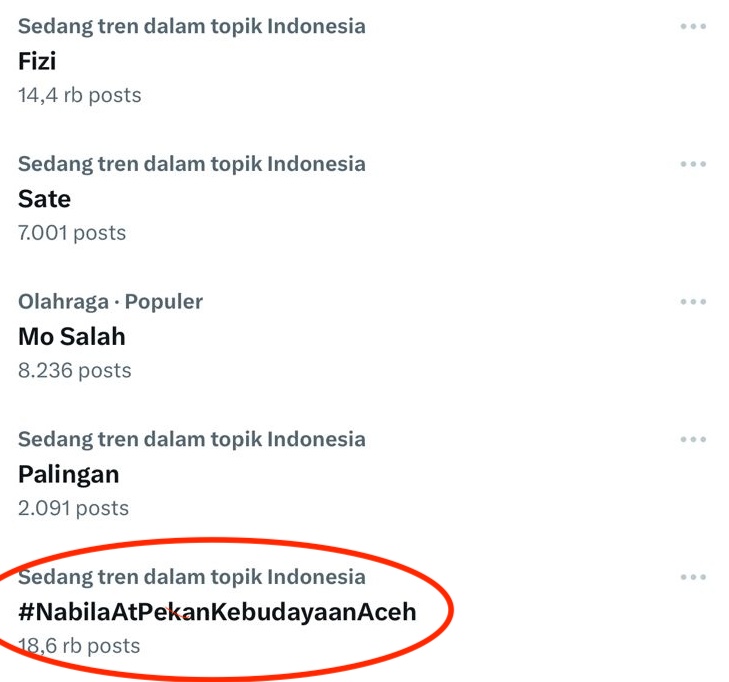 Selain disaksikan ribuan warga yang hadir langsung, penampilan Nabila juga menjadi pembicaraan di situs X. Tagar #NabilaAtPekanKebudayaanAceh dicuit sebanyak 19,5 ribu kali.