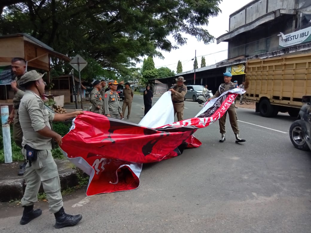 Petugas Satpol PP didampingi oleh Panwaslih Aceh Jaya dan Panwascam turut bantu oleh personil dari Polres Aceh Jaya, personil Kodim 0114/Aceh Jaya dan Personil Subdenpom IM/2-5 Calang.
