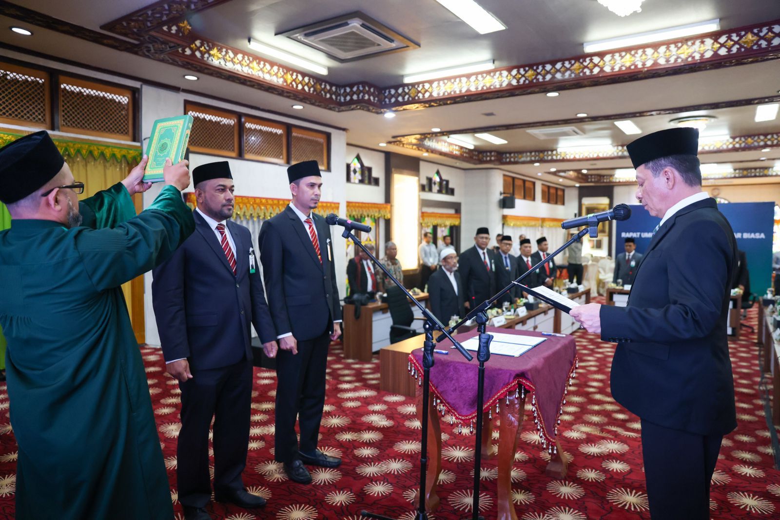 Pelantikan berlangsung setelah pelaksanaan Rapat Umum Pemegang Saham Luar Biasa (RUPSLB) di Pendopo Gubernur Aceh, Rabu, 27 Desember 2023.