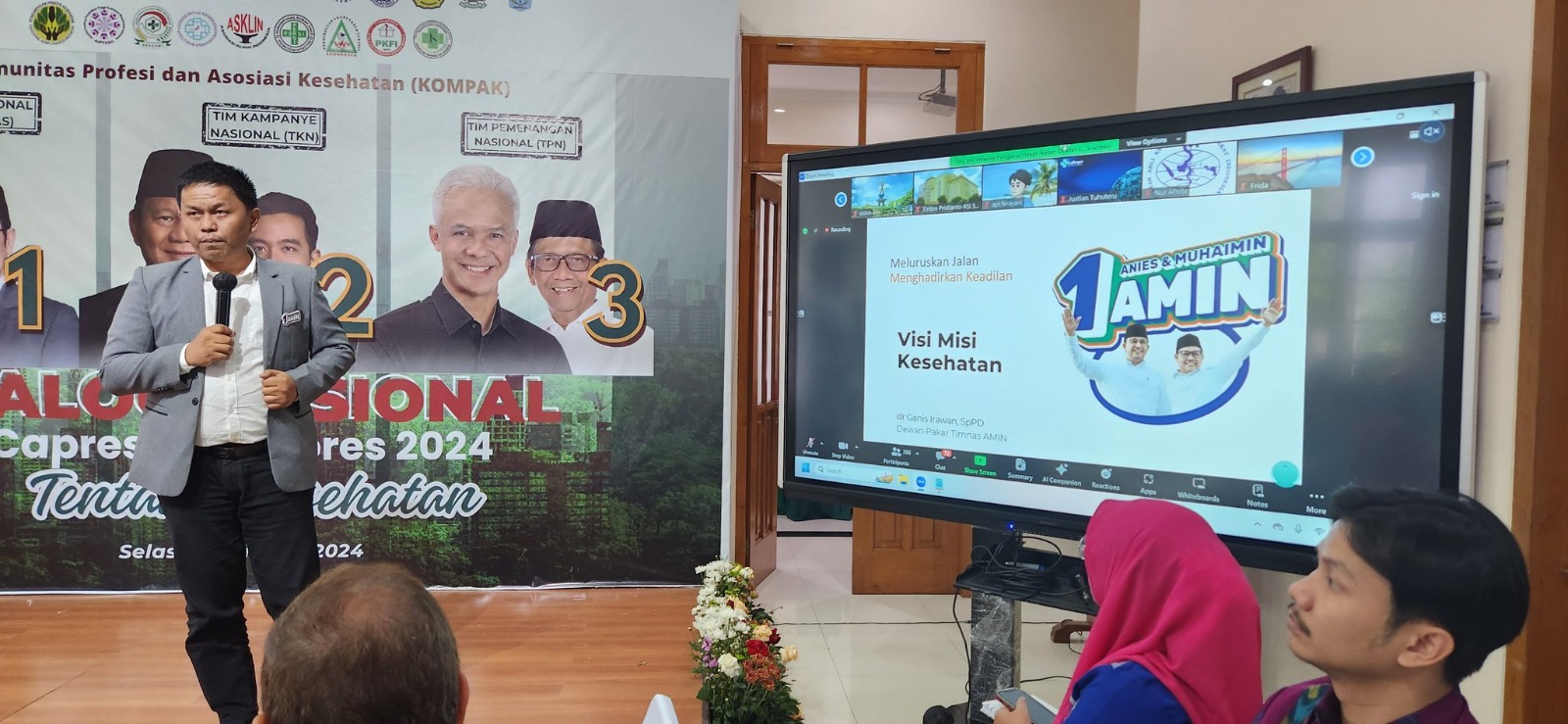 Di depan organisasi profesi, asosiasi kesehatan, dan asosiasi institusi pendidikan tinggi kesehatan, Ganis menyampaikan, jargon utama visi dan misi AMIN adalah ‘Meluruskan Jalan Menghadirkan Keadilan’.