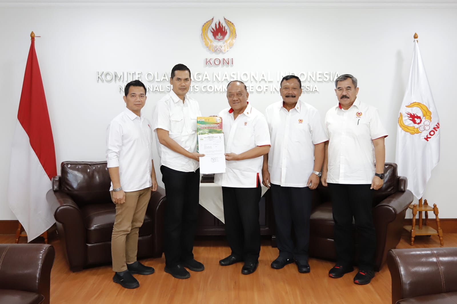 DISTORI.ID – Panitia Besar (PB) Pekan Olahraga Nasional (PON) Wilayah Aceh menyerahkan master plan dan proposal pelaksanaan PON XXI tahun 2024 Wilayah Aceh kepada Ketua Umum KONI Pusat Letjen TNI (Purn) Marciano Norman, Selasa 9 Januari 2024, di Gedung KONI Pusat, Jakarta.
