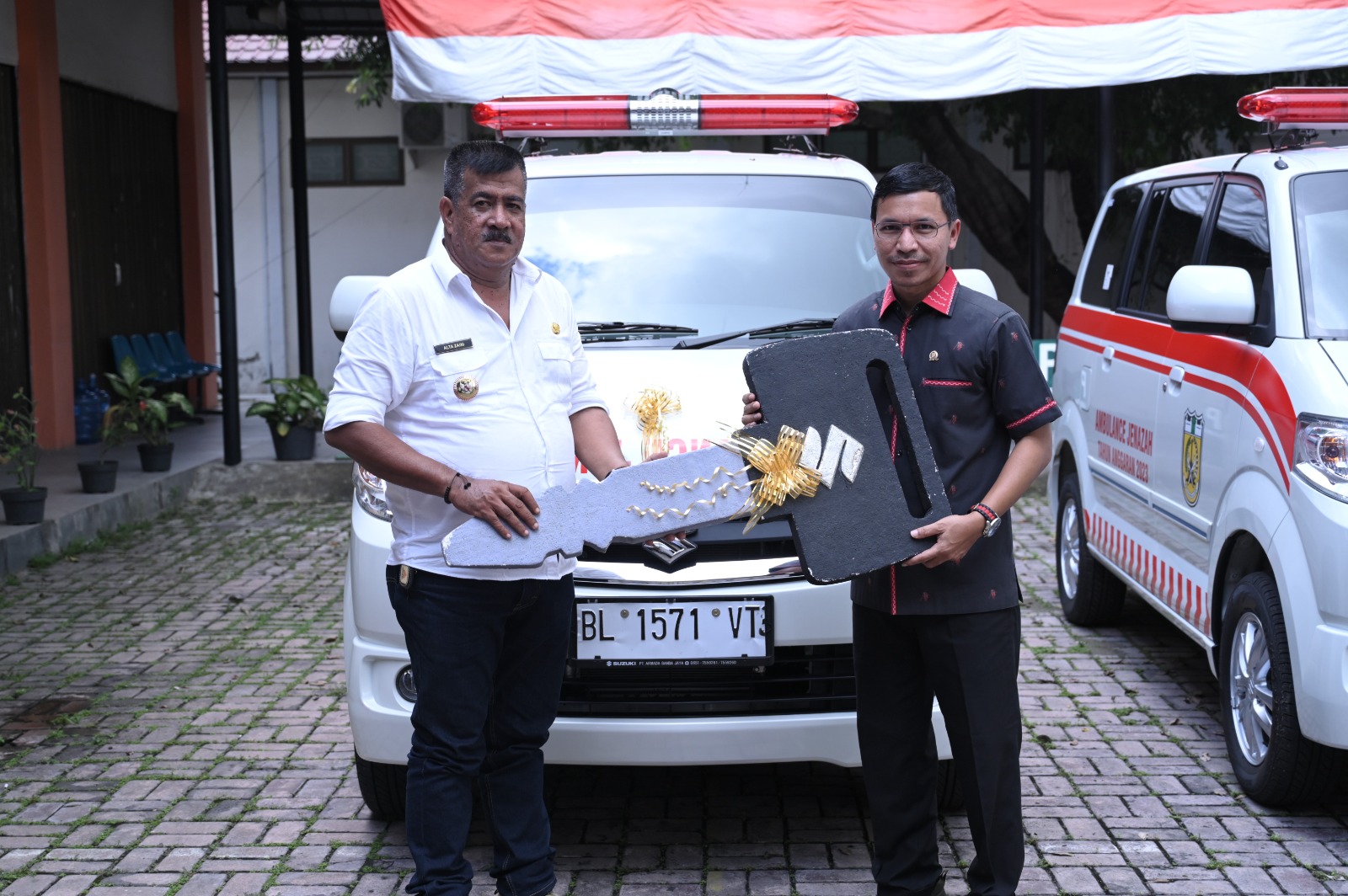 Hibah ambulan untuk gampong diterima oleh para Ketua Badan Kemakmuran Masjid (BKM) yang terdiri dari Ketua BKM Al Huda Gampong Laksana, Tgk. Yuslimar, Ketua BKM Al Abrar Gampong Lamdingin, Waled Abdul Muthalib, dan Ketua BKM Al Hidayah Gampong Lampulo, Masykur.