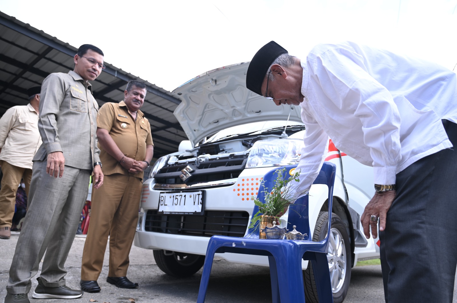 DISTORI.ID – Ketua Dewan Perwakilan Rakyat Kota (DPRK) Banda Aceh, Farid Nyak Umar menyerahkan satu unit mobil ambulans untuk warga Gampong Lampulo, Kecamatan Kuta Alam, Kota Banda Aceh, Selasa (16/01/2024).