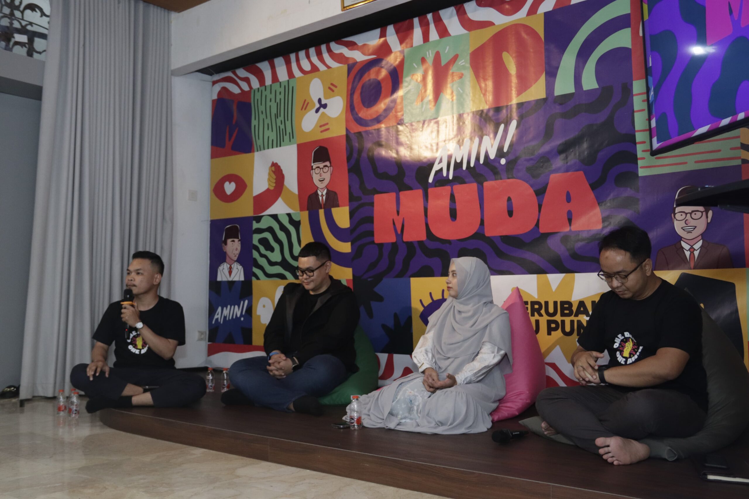 Gerakan 1 Day 1 AMIN diresmikan oleh Ivan Ahda (Deputi Pekerja Kreatif Timnas AMIN), dr. Auliya Rahmi Fadlilah (Jubir Muda Timnas AMIN), dan Iman Syafei (Deputi Milenial Gen-Z Timnas AMIN).