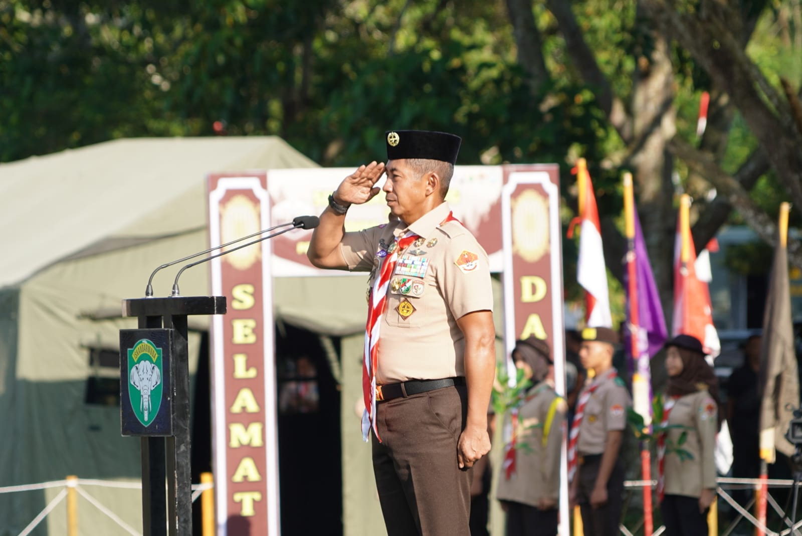 DISTORI.ID – Panglima Komando Daerah Militer Iskandar Muda (Pangdam IM) Mayor Jenderal TNI Novi Helmy Prasetya, memimpin Upacara pembukaan Perkemahan Pramuka Saka Wira Kartika.