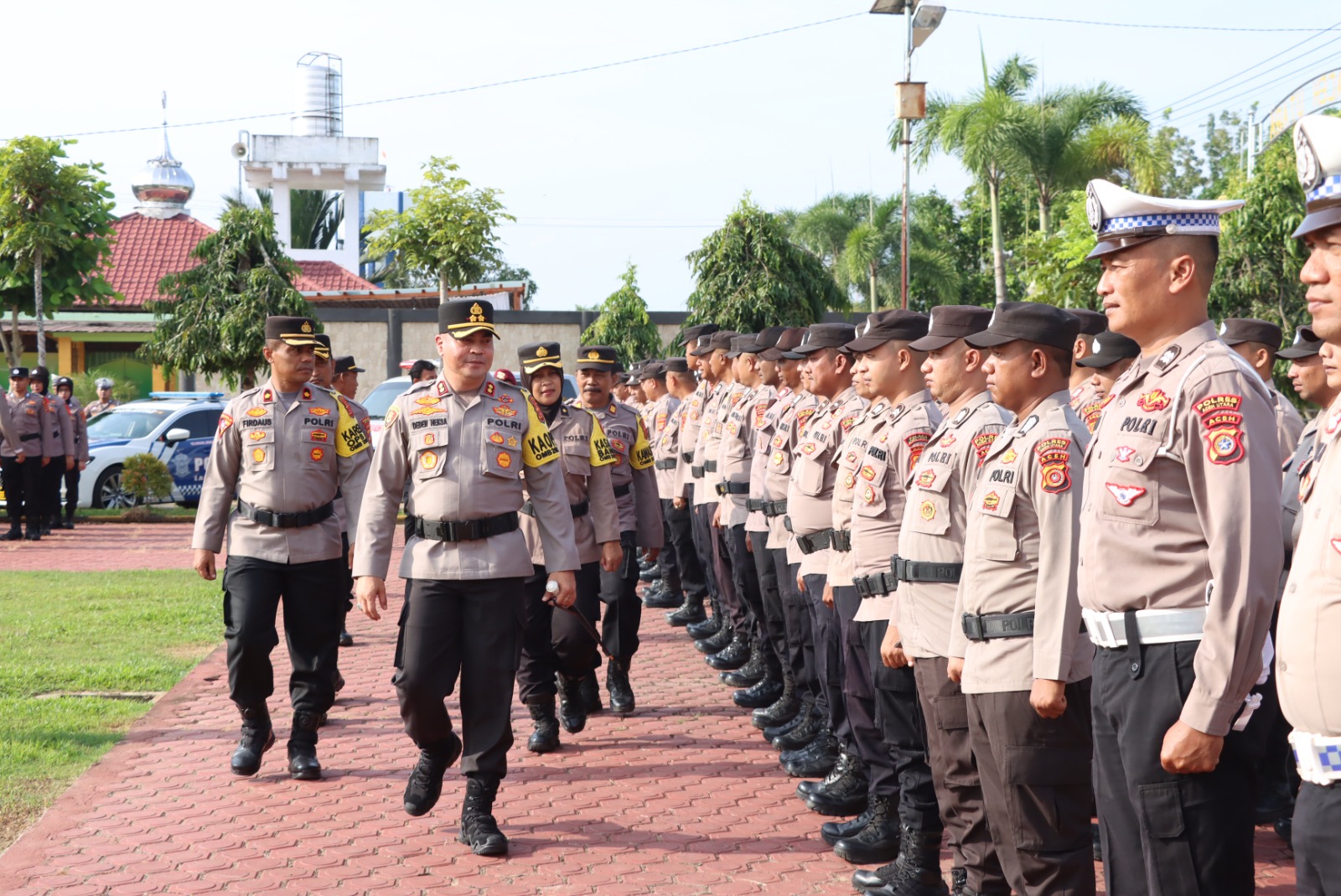 Gelar pasukan ini dipimpin langsung oleh Kapolres Aceh Utara, AKBP Deden Heksaputera, di lapangan Mapolres setempat, Rabu (7/2/2024).