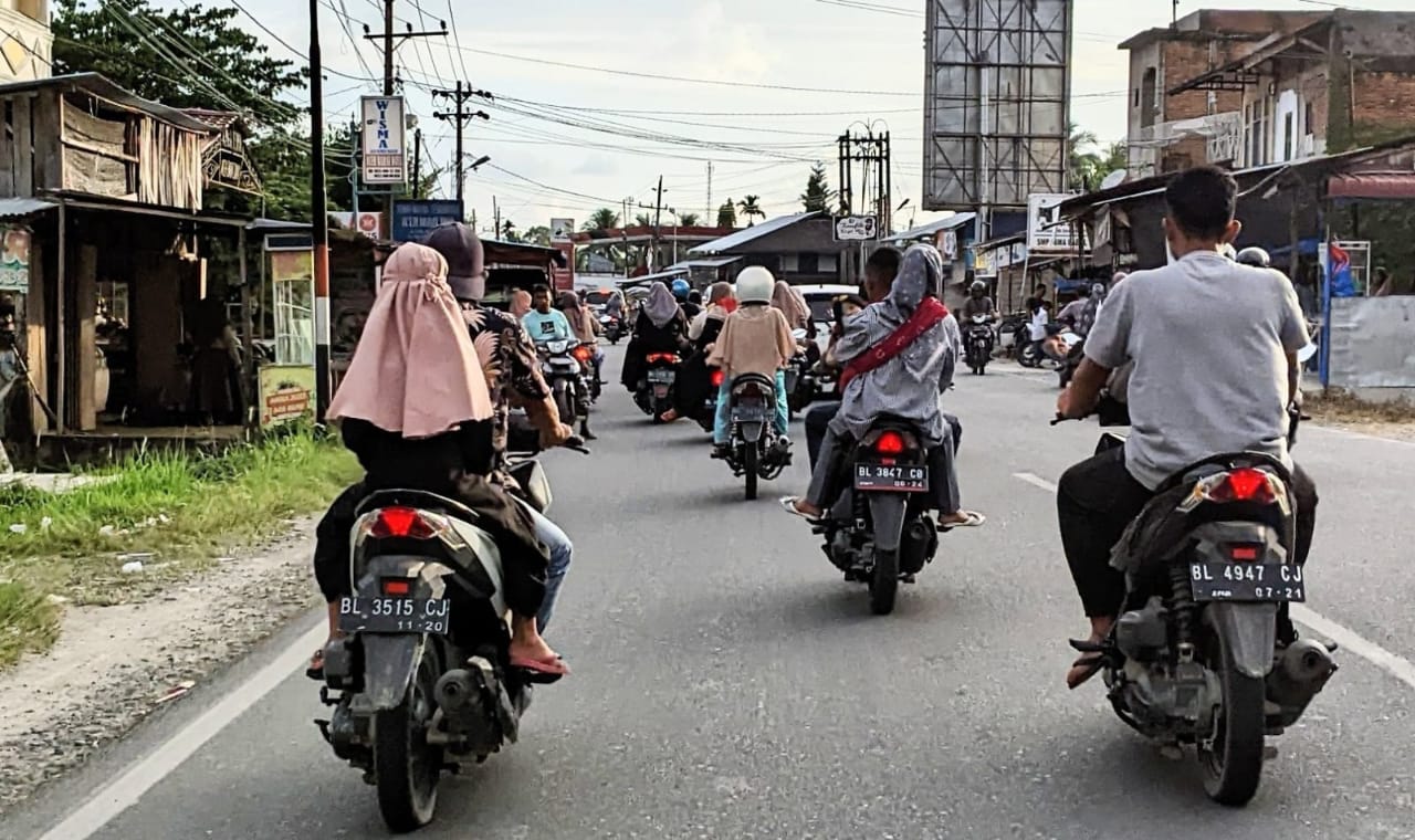 DISTORI.ID – Jalan Nasional pusat Kota Blangpidie, Kabupaten Aceh Barat Daya (Abdya) sore hari di awal bulan ramadan terlihat lebih padat.