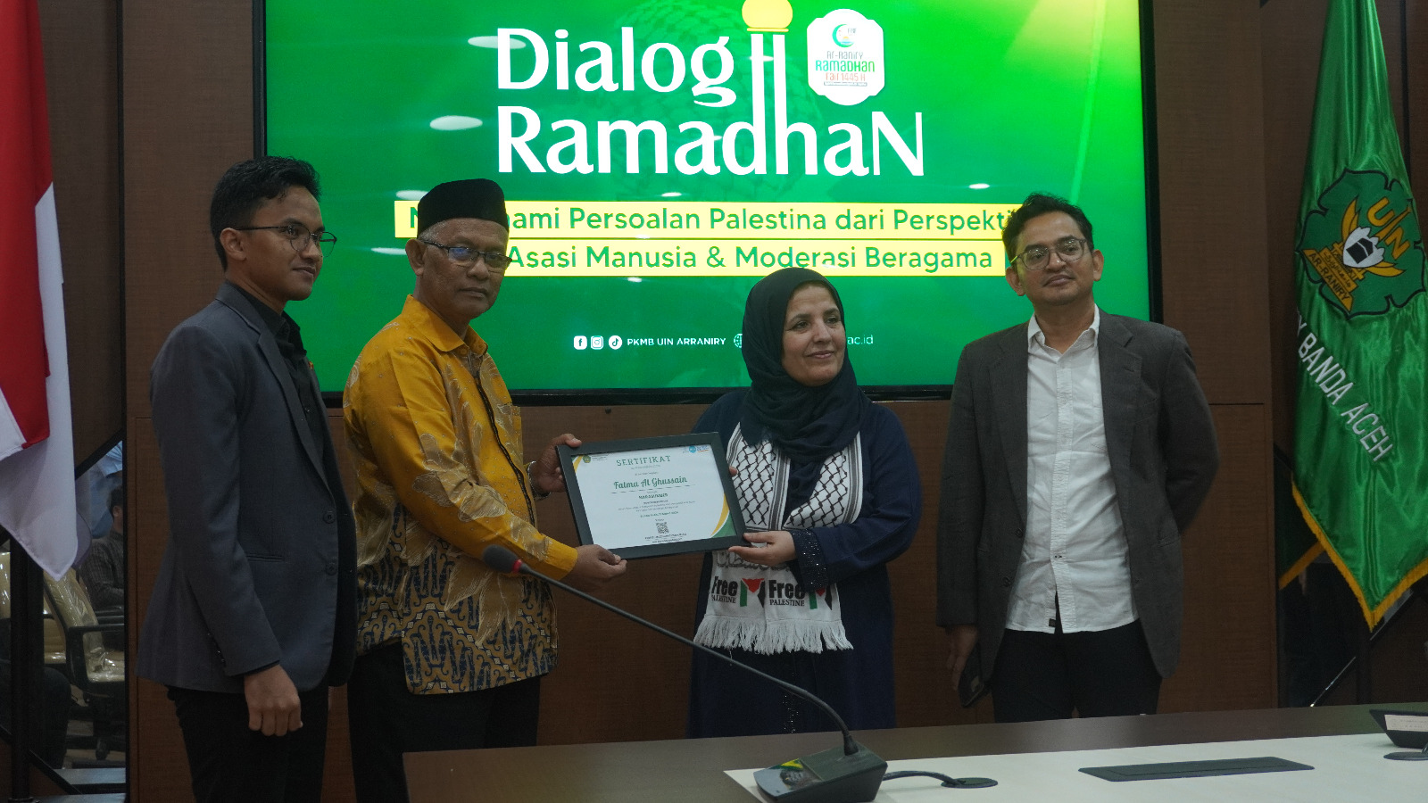 DISTORI.ID – Pusat Kerohanian dan Moderasi Beragama (PKMB) UIN Ar-Raniry, bekerjasama dengan Pusat Studi Hukum Pidana dan Kriminologi UIN Ar-Raniry dan International Centre for Aceh and Indian Ocean Studies (ICAIOS) menyelenggarakan diskusi terbuka dengan tema “Dialog Ramadhan: Memahami Masalah Palestina dari Perspektif Hak Asasi Manusia dan Moderasi Beragama”.