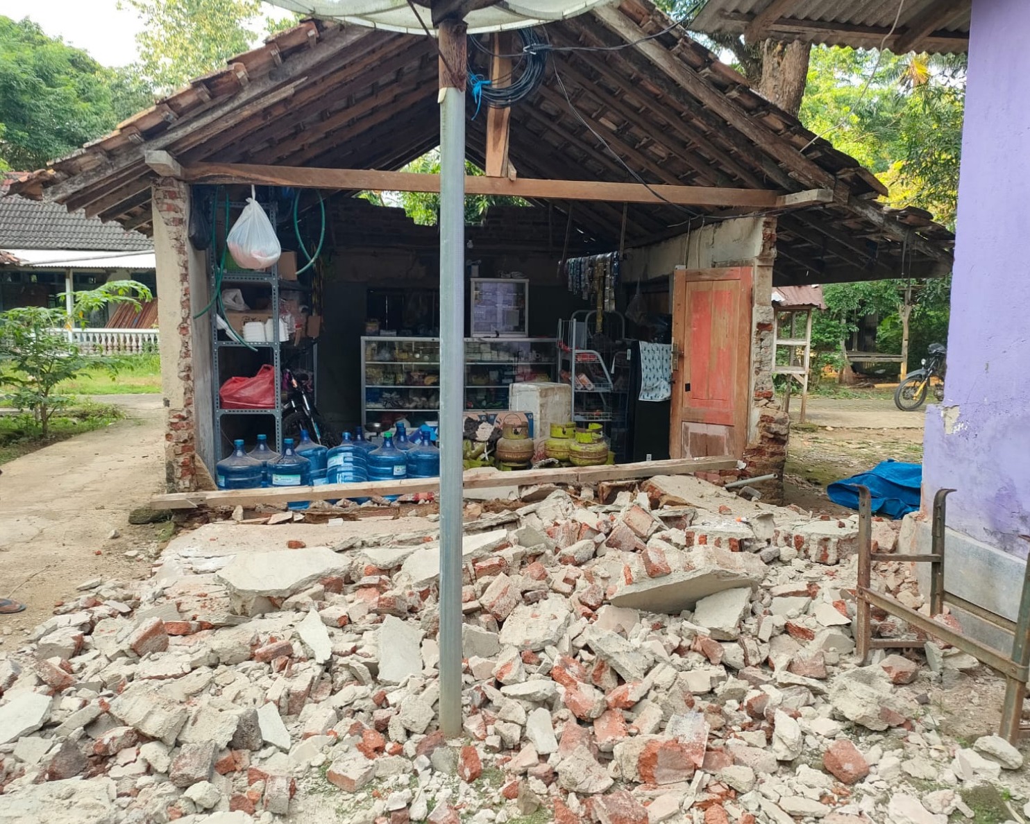 Adapun kerugian materil dari dampak gempa bumi ini meliputi 4 unit rumah rusak berat, 13 unit rumah rusak ringan, 42 unit rumah rusak ringan, 1 unit balai desa rusak berat, 4 unit fasilitas kesehatan rusak ringan, 2 unit Sarana Pendidikan rusak ringan, 1 unit Sarana Pendidikan (Ponpes) rusak sedang, 2 unit Fasilitas Perkantoran rusak ringan, dan merusak dua unit sarana ibadah.