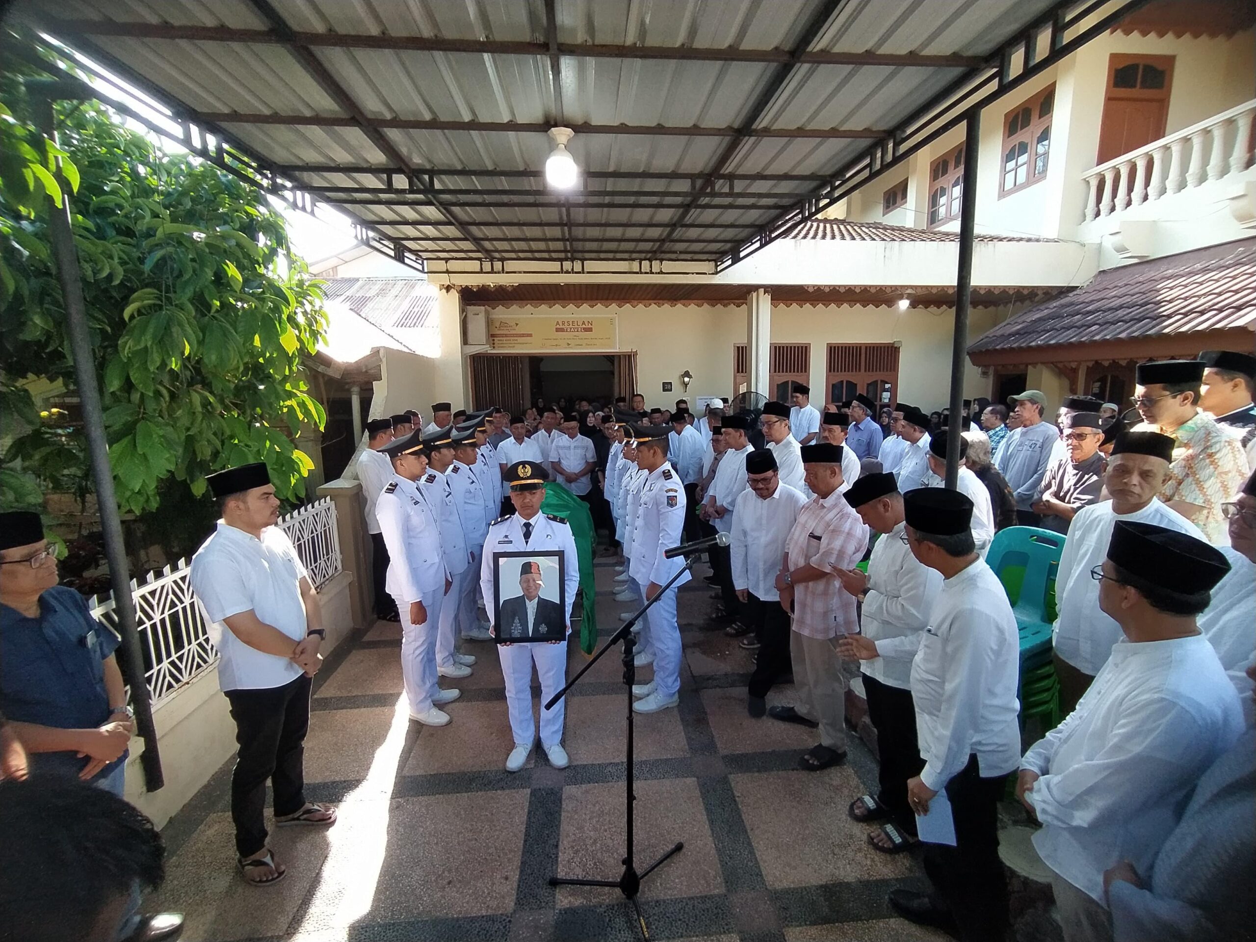 “Hari ini, kita berkumpul dalam kepedihan yang mendalam atas berpulangnya seorang tokoh yang sangat dihormati dan dicintai di tengah-tengah kita, kata Azwardi membacakan pernyataan Penjabat Gubernur,”
