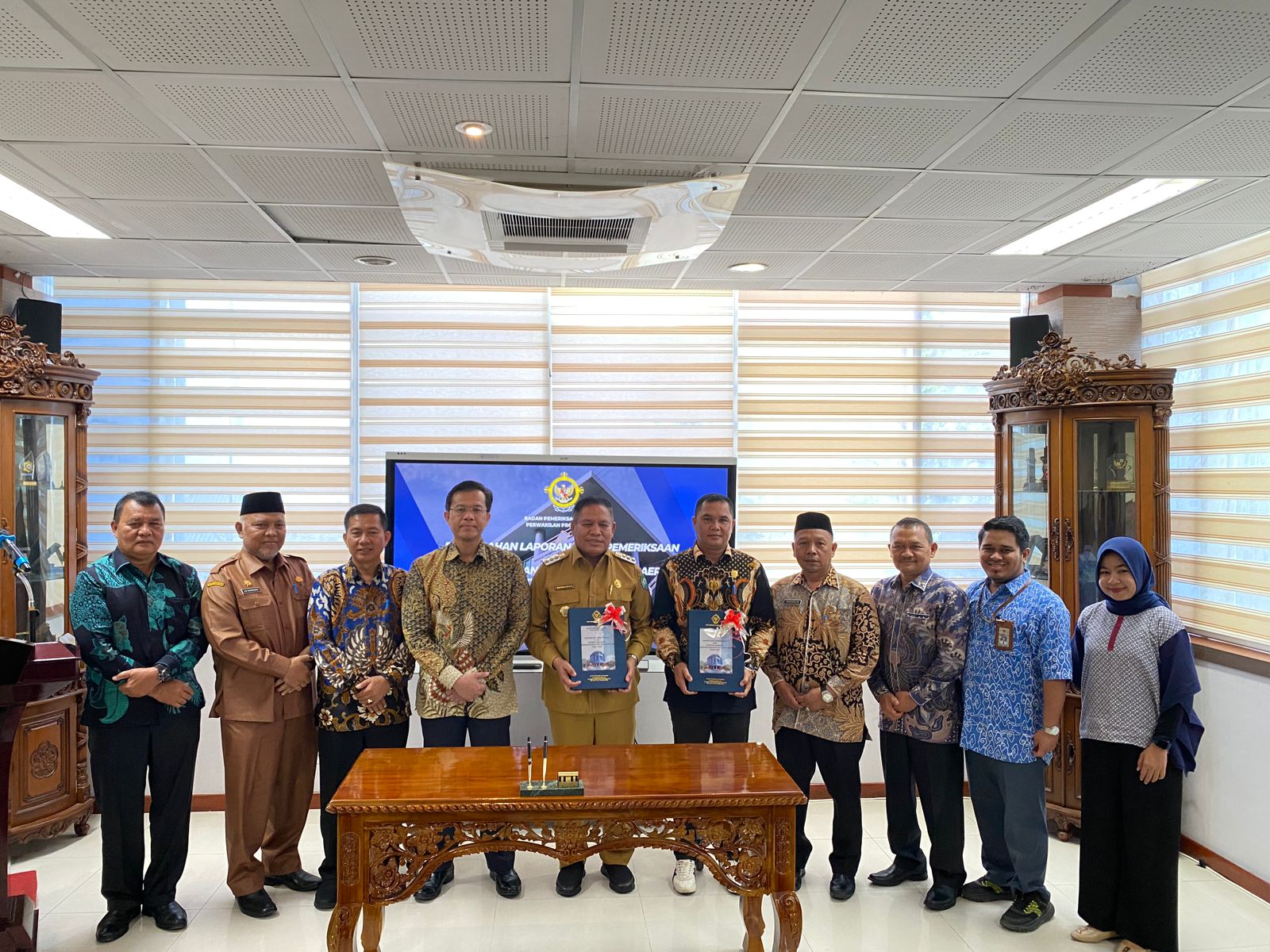 Penyerahan penghargaan diserahkan oleh Kepala Sub Auditorat Aceh II BPK RI Perwakilan Aceh Myrto Handayani, S.E.,M.Si.,Ak.,CA kepada Penjabat (Pj) Bupati Abdya, Darmansah, S.Pd.,M.M. bersama Ketua DPRK Abdya Nurdianto, di Aula gedung utama BPK RI Perwakilan Aceh di Banda Aceh, Selasa, 30 April 2024.