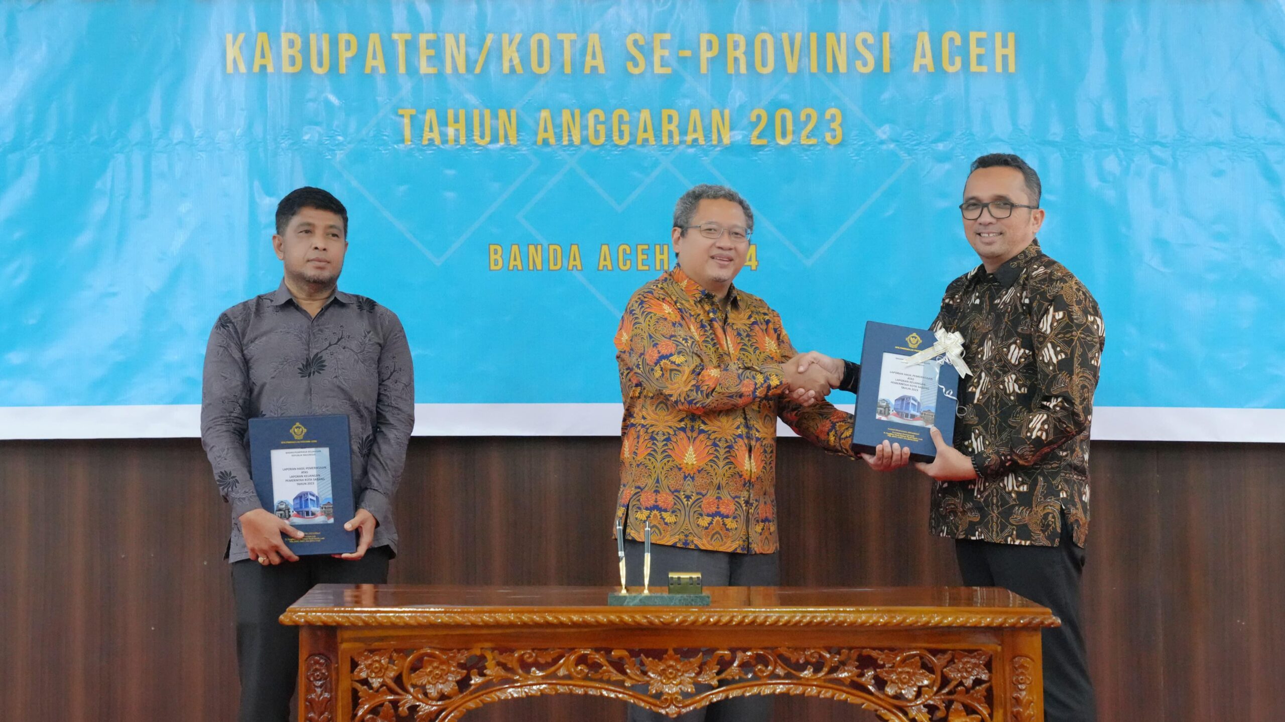 Opini WTP ini diserahkan BPK RI Perwakilan Aceh kepada Pemerintah Kota Sabang bersamaan dengan penyerahan LHP Pemerintah Kota Banda Aceh dan Pemerintah Kabupaten Aceh Besar.