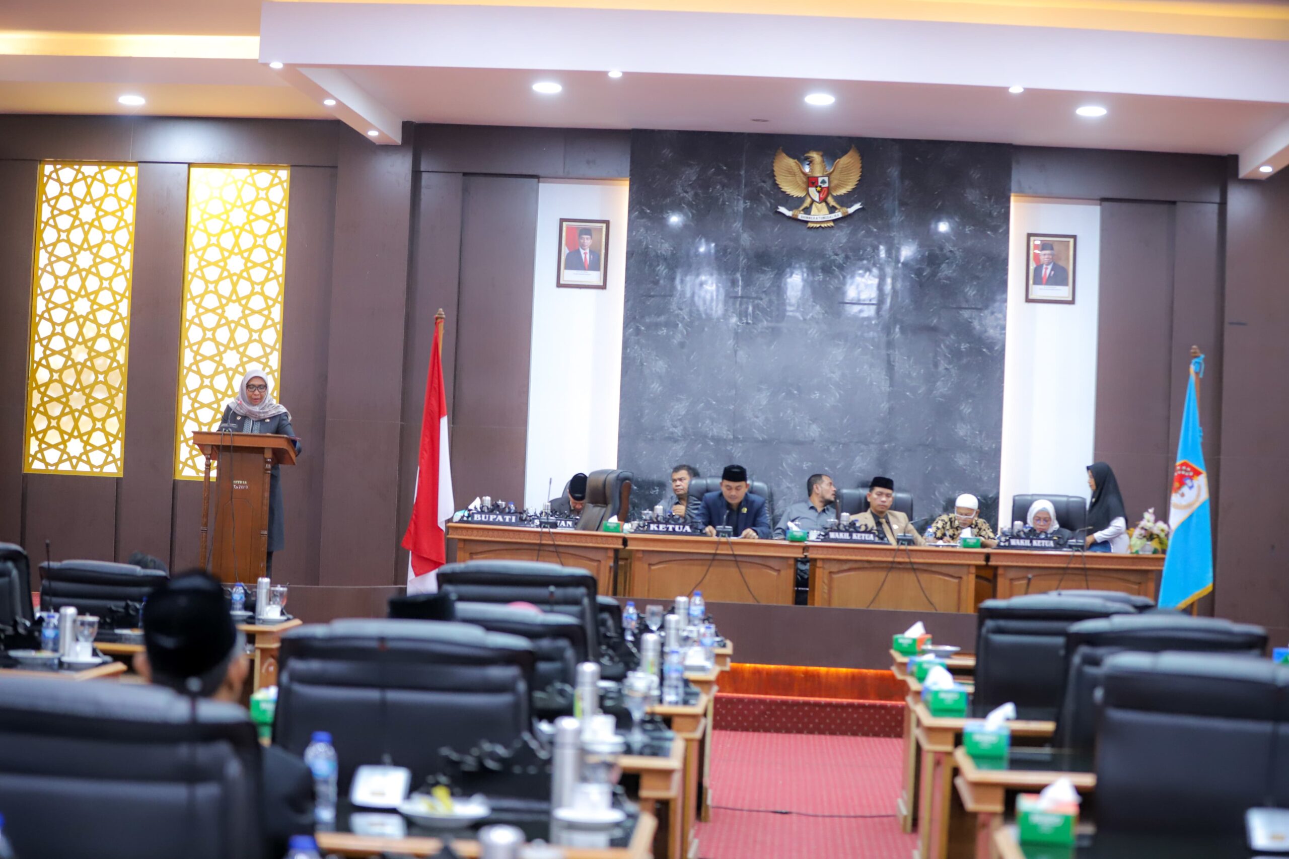 DISTORI.ID – Penjabat (Pj) Bupati Nagan Raya, Fitriany Farhas menghadiri rapat paripurna ke-4 masa persidangan II Tahun 2024 dalam rangka penyampaian pendapat akhir Dewan Perwakilan Rakyat Kabupaten (DPRK) Nagan Raya, Rabu (8/5/2024).