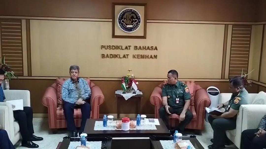 DISTORI.ID – Duta Besar (Dubes) Palestina, Zuhair Al-Shun, melakukan kunjungan ke Pusdiklat Bahasa, Jumat (31/5/2024) pukul 11.00 WIB. Kunjungan Zuhair diterima langsung oleh Kapusdiklat Bahasa Brigjen TNI Irfan Siddiq di ruang Kapusdiklat Bahasa dengan suasana hangat dan penuh kekeluargaan.