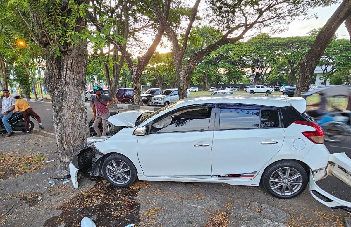 DISTORI.ID – Mobil Toyota Yaris yang dikemudikan oleh Khairun Nisa (35) menabrak batang pohon asam di bahu Jalan Abdulllah Ujung Rimba, Gampong Baro, Kecamatan Baiturrahman, Kota Banda Aceh, Jumat (7/6/2024) pagi.