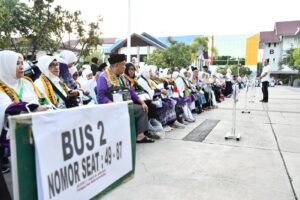 DISTORI.ID – Pj Wali Kota Banda Aceh, Amiruddin kembali melepas Jemaah Calon Haji (JCH) asal Banda Aceh yang tergabung dalam Kloter 11 ke Asrama Haji untuk selanjutnya terbang menuju Mekkah