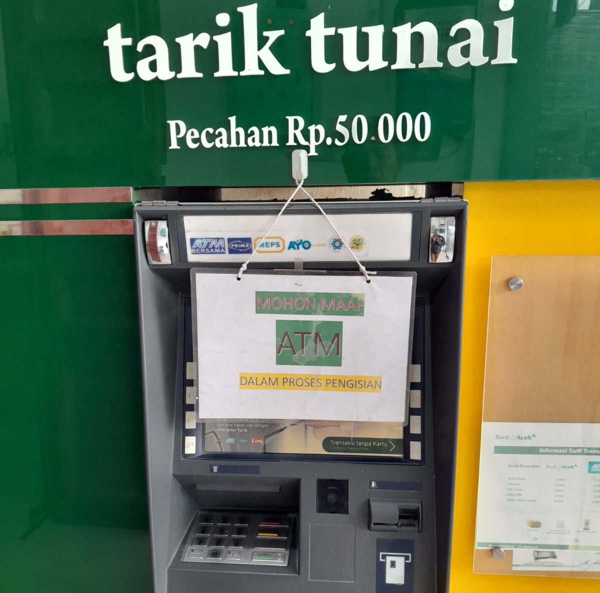Alhasil, warga yang terdesak ingin menarik uang tunai di ATM itu malah harus kecewa. Sementara untuk menuju ATM terdekat dari kecamatan Kuala Batee sangat jauh, yakni berada di Kecamatan Babahrot dan Kecamatan Blangpidie yang jaraknya hampir 10 Kilo.