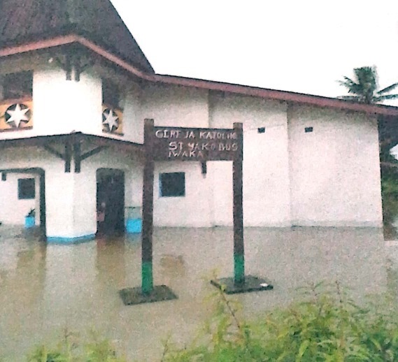 DISTORI.ID – Banjir merendam Distrik Iwaka, di Kabupaten Mimika, Provinsi Papua Tengah, sejak Senin10 Juni 2024 malam.