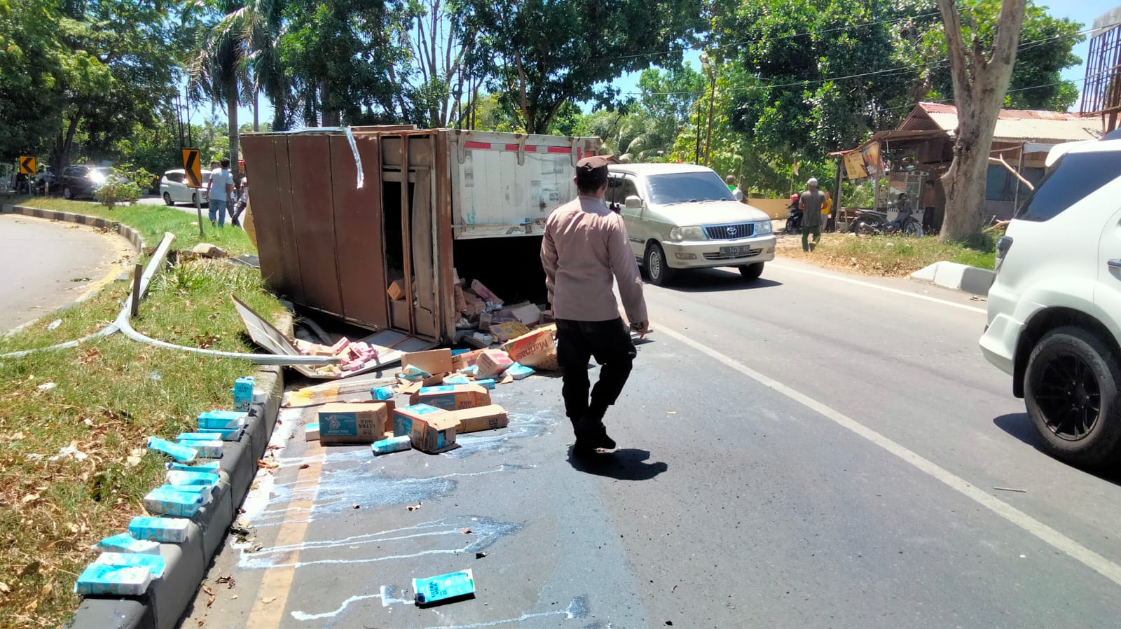 “Sedangkan mobil mengalami rusak parah di bagian depan dan barang di dalam boks berhamburan di badan jalan,” ungkapnya.