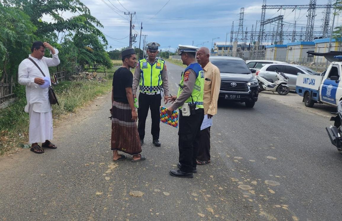 Setibanya di lokasi kejadian, korban Hanafiah saat berbelok ke kanan untuk menuju rumahnya tidak memperhatikan arus lalu lintas yang datang dari arah depan.