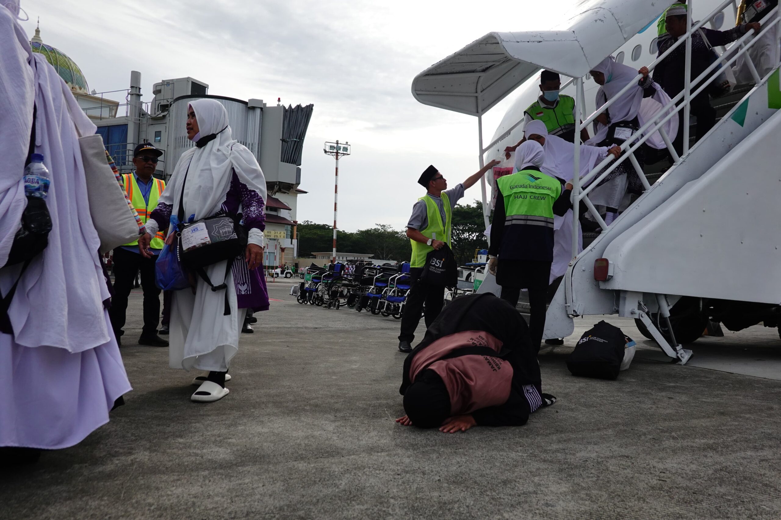 Jemaah yang berasal dari Kabupaten Pidie dan Bireuen tersebut berangkat dari Bandara Amir Muhammad bin Abdul Aziz, Madinah pada hari yang sama dengan pesawat Boeing 777-300ER milik maskapai Garuda Indonesia pukul 03.54 Waktu Arab Saudi (WAS).